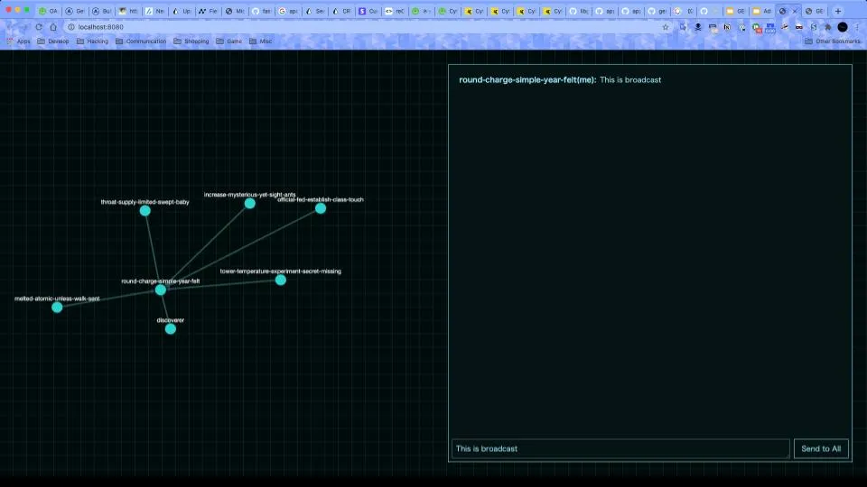2日間のハッカソンに友人3人と参加しました。 GENKAINETという、WebRTCを用いてインターネット上にネットワークを構築してテキストのやり取りができるアプリケーションを開発し、最優秀賞を受賞しました。 主にフロントエンドのUIの部分の開発を担当しました。